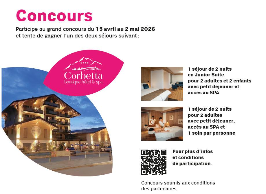 Du 15 avril au 2 mai 2026, participe à notre grand concours et tente de remporter 1 séjour duo ou 1 séjour en famille.