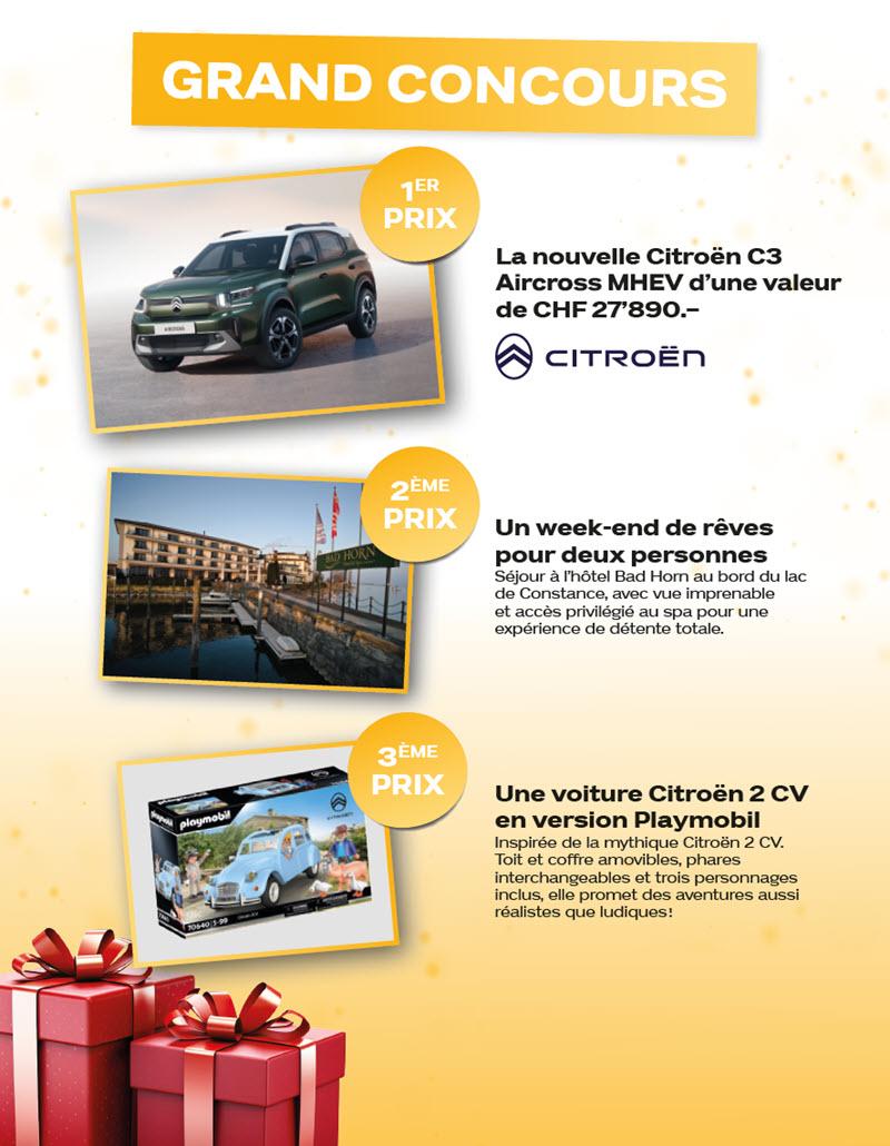 🍀 le grand concours avec une Citroën C3 Aircross MHEV et d'autres prix à gagner 👉🏻 Bulletins et conditions de participation dans le centre